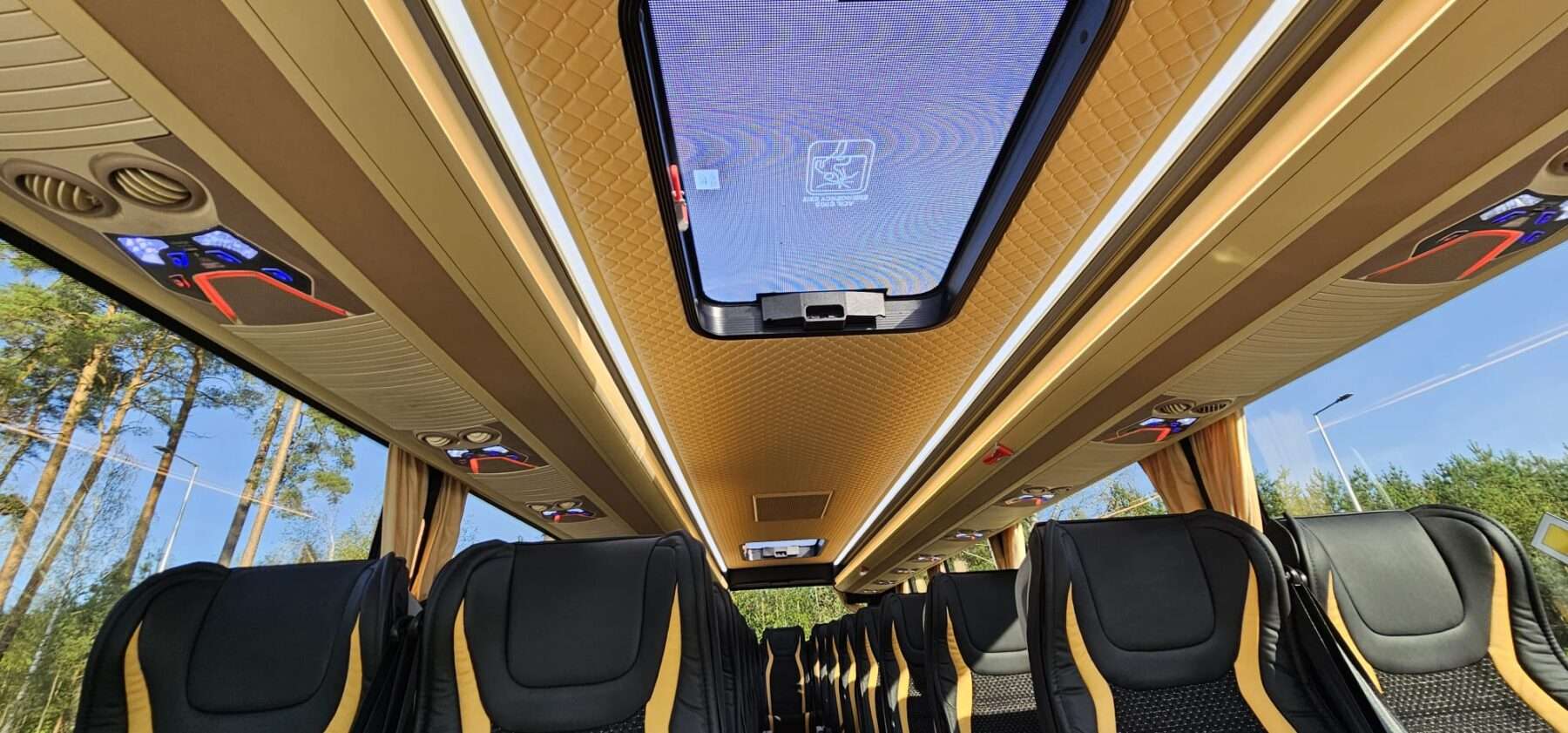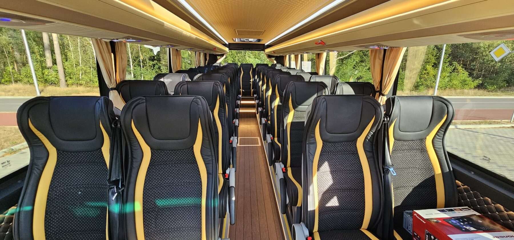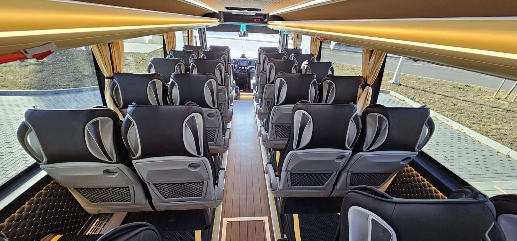 Iveco Golden 2024 – komfortowa podróż z miejscem na wszystko! To nowoczesny midibus klasy turystycznej, idealny na długie trasy i wymagające logistycznie wyjazdy. Łączy wygodę podróży z wyjątkowo dużą przestrzenią bagażową – największą w swojej klasie – co czyni go doskonałym wyborem na transfery lotniskowe, wyjazdy sportowe czy delegacje z większą ilością sprzętu. Na pokładzie pasażerowie znajdą ergonomiczne, rozkładane fotele z regulacją, indywidualne oświetlenie LED, nawiewy, porty USB oraz klimatyzację o wysokiej wydajności – wszystko to zapewnia komfort podróży nawet przy pełnym obłożeniu. Iveco Golden 2024 sprawdza się doskonale w obsłudze grup korporacyjnych i instytucjonalnych, wyjazdach zagranicznych, przewozach z dużą ilością bagażu. To niezawodne i uniwersalne rozwiązanie dla tych, którzy szukają wygodnego i przestronnego pojazdu z klasą.