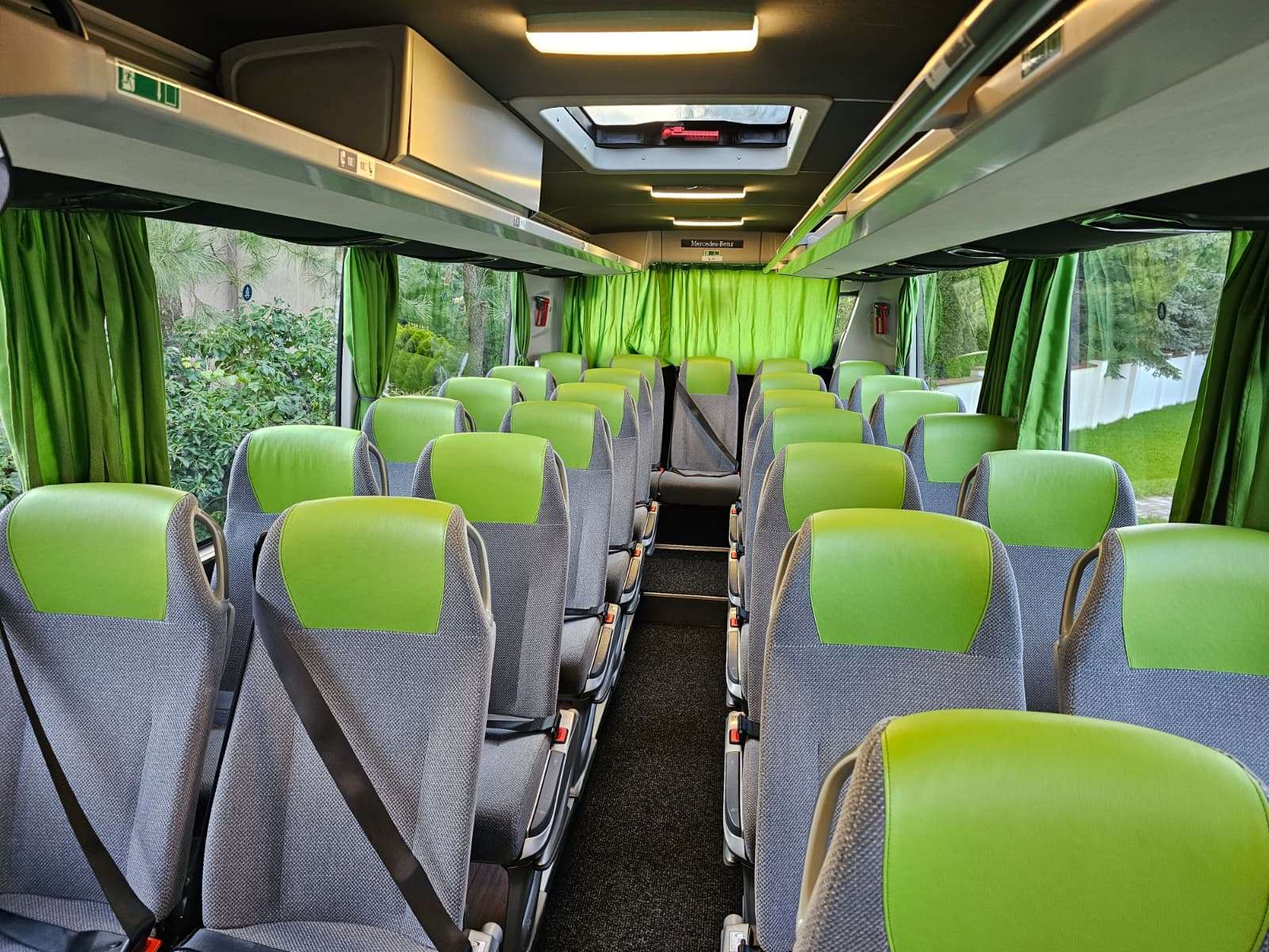 Mercedes New Tourismo to największy autokar naszej floty, który łączy nowoczesny design z najwyższym standardem podróżowania. Zaprojektowany z myślą o komforcie pasażerów na długich trasach, oferuje doskonałą ergonomię, zaawansowane systemy bezpieczeństwa i wyjątkowo ciche wnętrze, które sprawia, że każda podróż staje się przyjemnością.